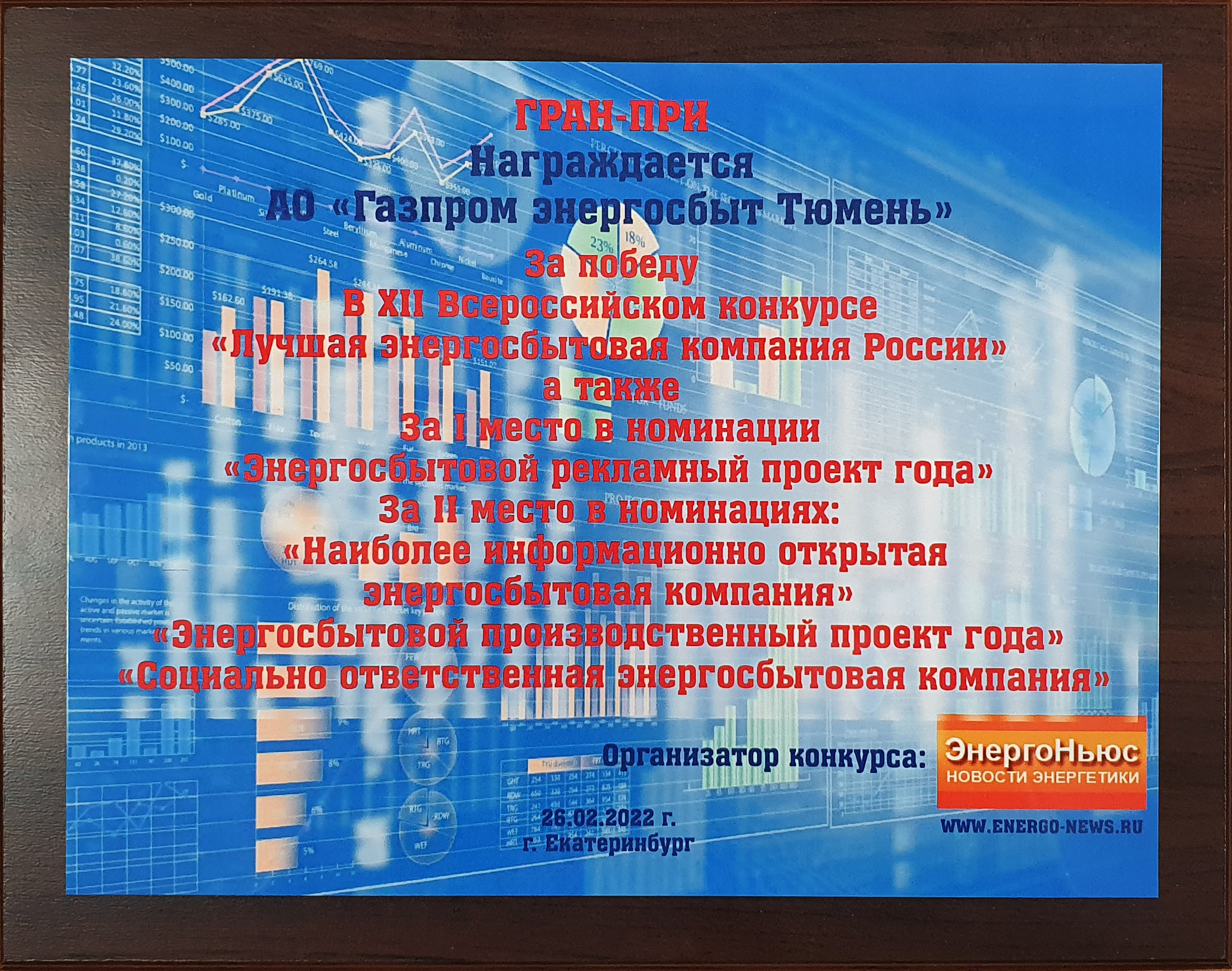 Гран-при за победу в XII Всероссийском конкурсе «Лучшая энергосбытовая компания России»
