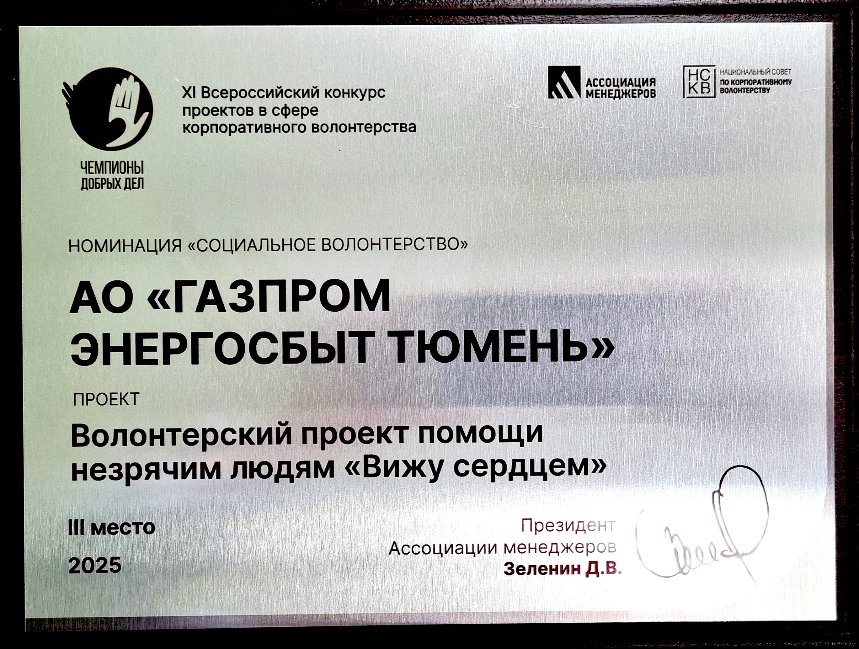 Диплом призера XI Всероссийского конкурса проектов в сфере корпоративного волонтерства «Чемпионы добрых дел»