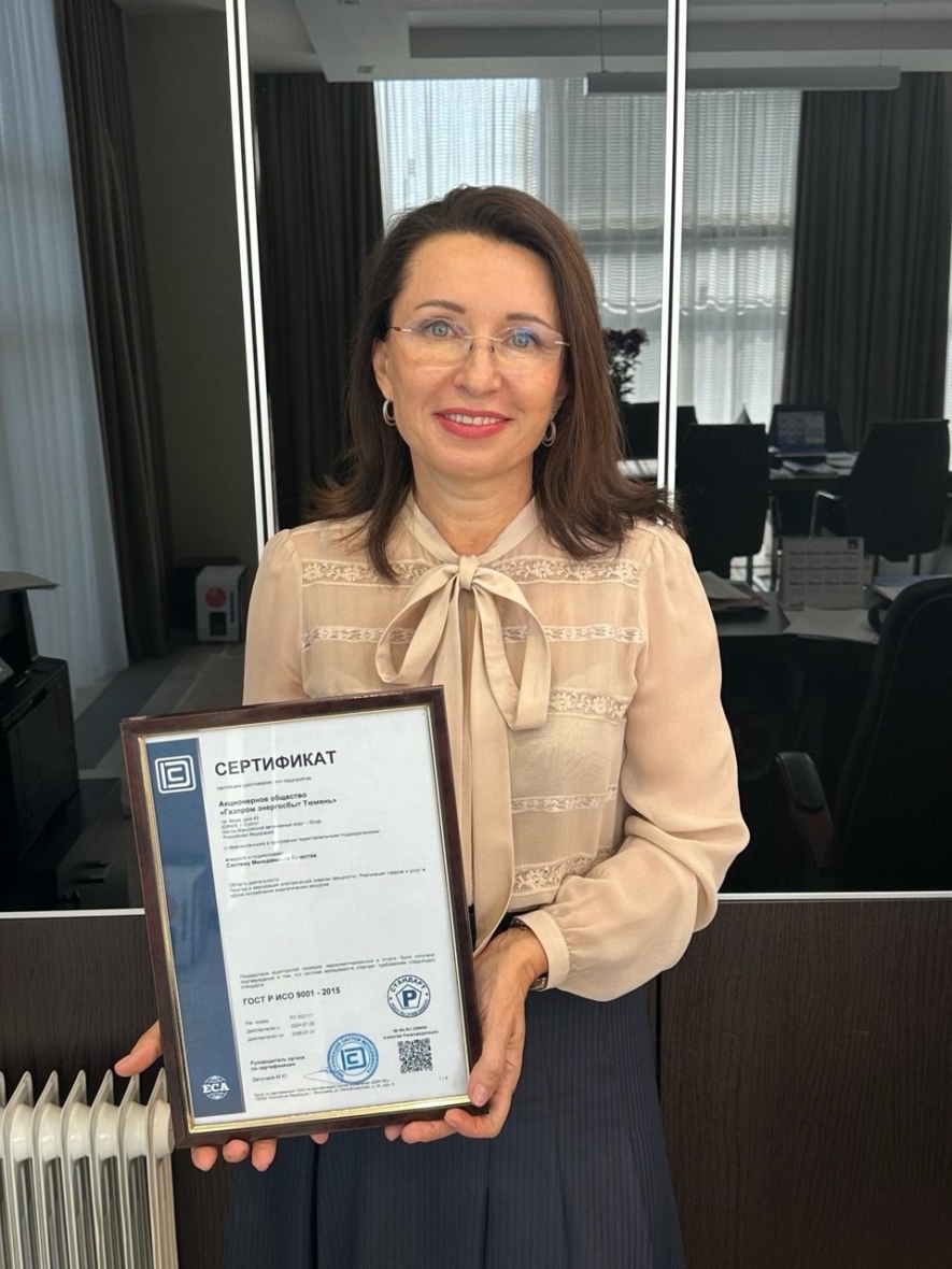 АО «Газпром энергосбыт Тюмень» прошло аудиторскую проверку системы менеджмента качества на соответствие требованиям Национального стандарта ГОСТ Р ИСО 9001:2015. Энергетикам выдан соответствующий сертификат, 16-й по счету за 19-летнюю историю компании.