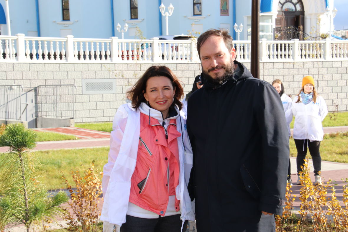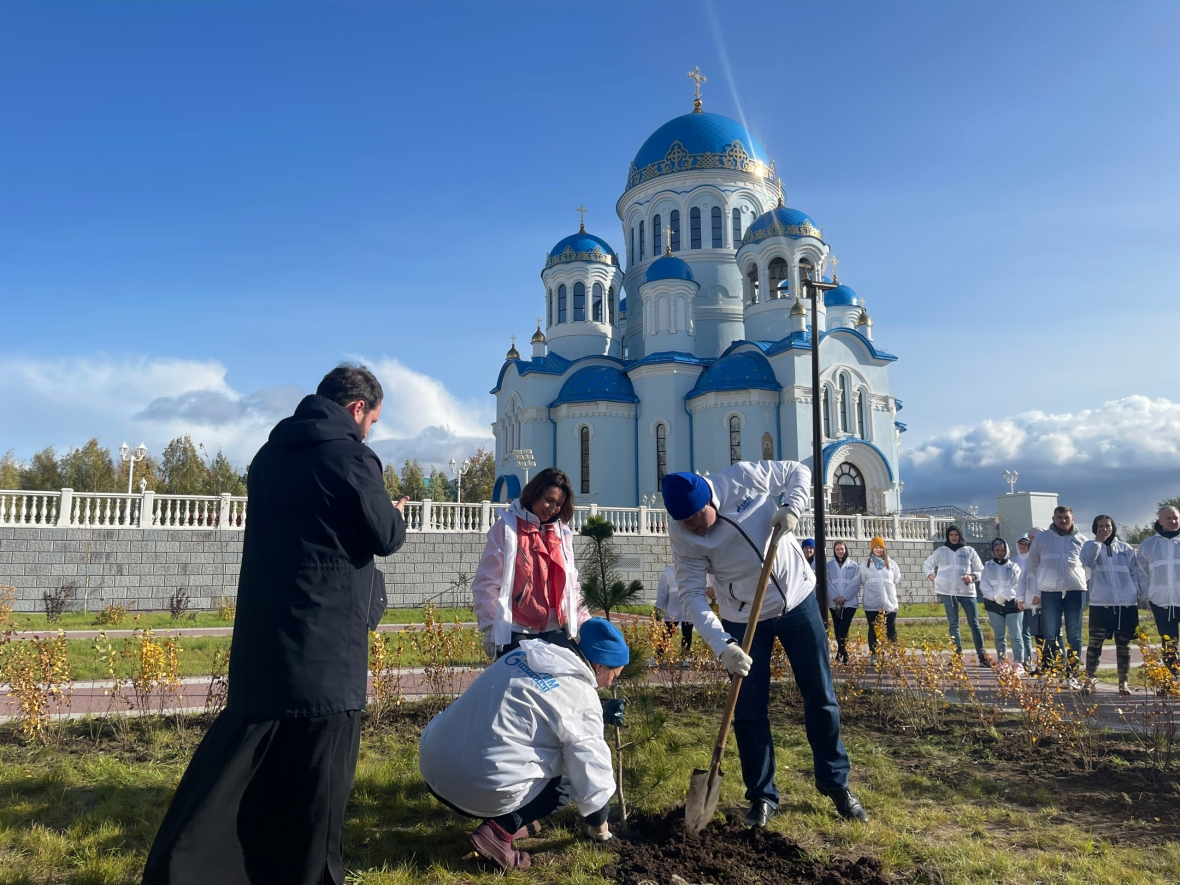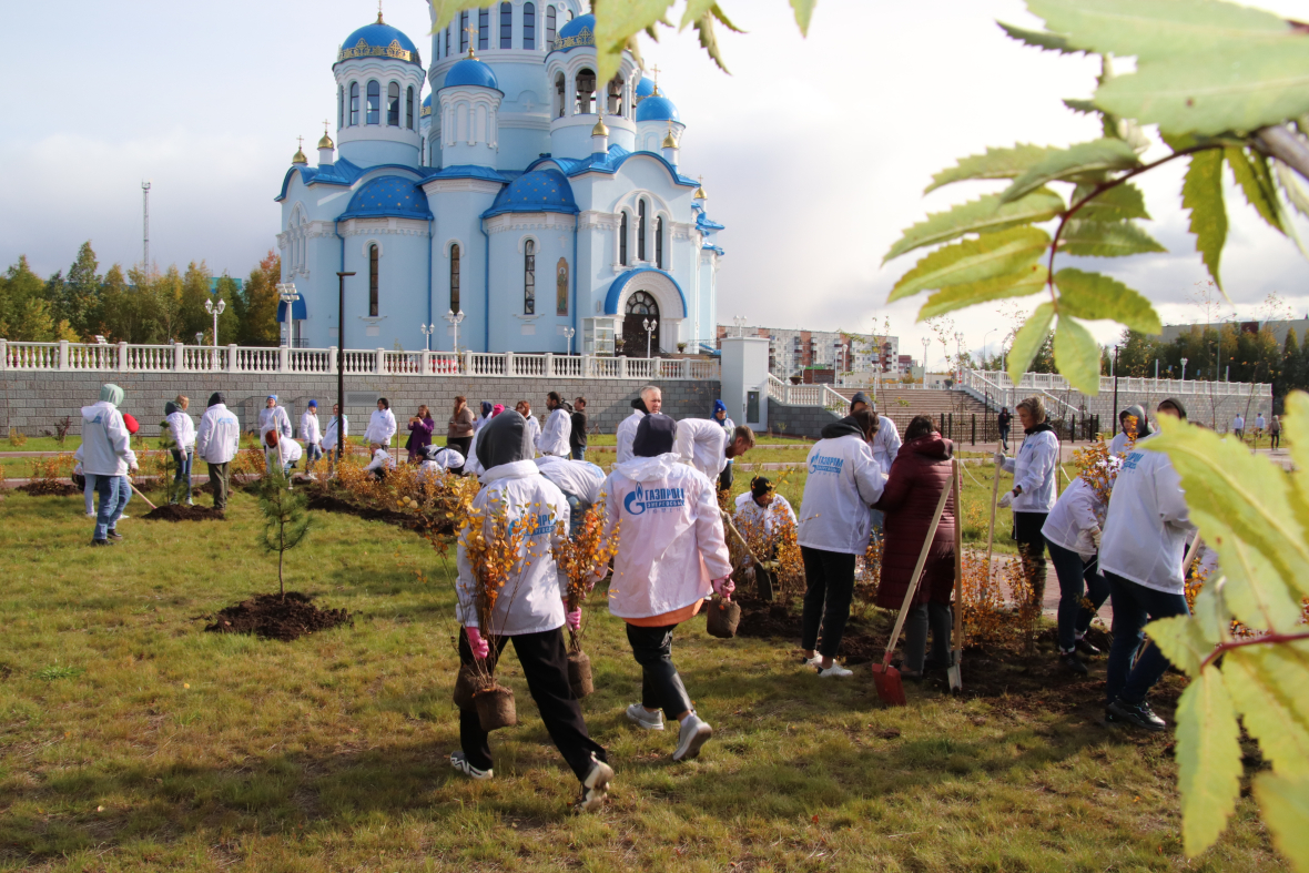 Всего в мероприятии по озеленению территории, прилегающей к Свято-Троицкому кафедральному собору, приняли участие 100 сотрудников АО «Газпром энергосбыт Тюмень». Вдоль стилобата, параллельно проспекту Мира, энергетики высадили саженцы рябины, кроны которой со временем украсят собой величественный собор. На другой стороне здания ландшафт территории дополнили сибирским кедром и живой изгородью из кизильника, уже следующей осенью кустарник порадует горожан яркими красками. К выбору посадочного материала отнеслись серьезно: все саженцы приобрели в местном питомнике, поэтому они уже акклиматизированы и должны легко пережить предстоящую зиму.«Для многих наших сургутских сотрудников маршрут от офиса к собору хорошо знаком. Энергосбытовая компания уже два года подряд в рамках договоренностей с Администрацией города Сургута и Ханты-Мансийской митрополией организует здесь субботники, а прошлой осенью мы разбили на площади перед Свято-Троицким кафедральным собором сквер, высадив более 700 саженцев деревьев, кустарников и многолетних цветов. В этом году мы дополнили сквер новыми деревьями и кустарниками. Земельный участок находится в муниципальной собственности, поэтому мы предложили городской администрации закрепить за нами данную территорию для дальнейшего благоустройства. Сейчас рассматривается вопрос о подписании соответствующего соглашения. Благодаря разным формам сотрудничества с представителями бизнес-сообщества город привлекает инвестиции в сферы, которые традиционно финансировались за счет бюджетных средств. Подобное взаимодействие открывает новые возможности для решения городских задач, в том числе связанных с формированием комфортной городской среды», — рассказала генеральный директор АО «Газпром энергосбыт Тюмень» Татьяна Бычкова.