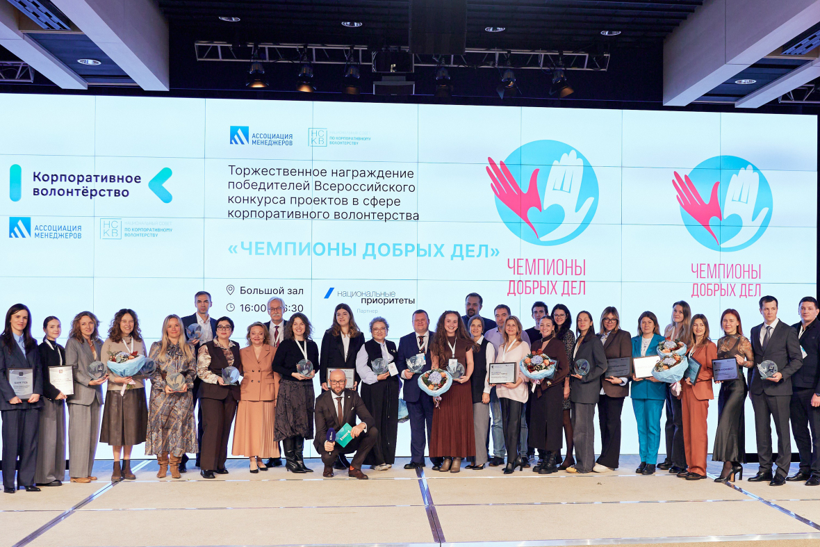 Конкурс «Чемпионы добрых дел» создан для выявления и обобщения лучших практик корпоративного волонтерства в России, а также развития и укрепления диалога между бизнесом и обществом. Его организаторы – Ассоциация менеджеров и Национальный совет по корпоративному волонтерству. Всего в этом году в конкурсе приняли участие 110 российских компаний, среди них – «Газпром нефть», «Аэрофлот», «Татнефть», «Мегафон», «Металлоинвест» и многие другие. По результатам экспертного голосования победителей определили в номинациях: «Гуманитарная помощь», «Здоровье и спорт», «Компетентностное и про боно волонтерство», «Местные сообщества», «Социальное волонтерство», «Старт в корпоративном волонтерстве», «Экология и защита окружающей среды». Также отмечены проекты в пяти специальных номинациях.