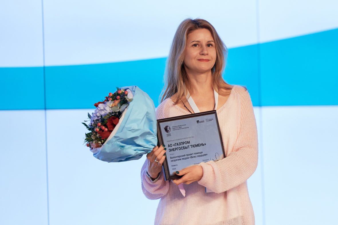 – Экспертный совет высоко оценил наш проект помощи незрячим людям «Вижу сердцем», который компания реализует с 2020 года. В номинации «Социальное волонтерство» мы заняли 3 место, уступив лишь таким гигантам, как «РУСАЛ» и «Лемана ПРО». Только 21 проект из 152 представленных был удостоен наград в основных номинациях. Поздравляю коллектив с этой победой! Горжусь, коллеги!» – отметила генеральный директор АО «Газпром энергосбыт Тюмень» Татьяна Бычкова на личной странице в социальной сети «ВКонтакте».