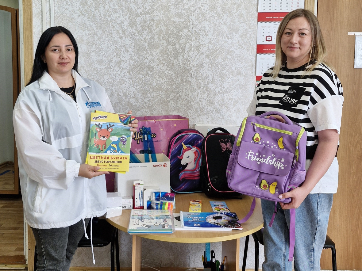 На Ямале, в городе Тарко-Сале, сотрудники Пуровского межрайонного отделения компании по адресному запросу приобрели два набора канцелярских принадлежностей для школьников-подростков и доставили их ребятам домой вместе со сладкими подарками. Специалисты Северного межрайонного отделения в Новом Уренгое передали нуждающимся семьям сертификаты на покупки в детском магазине, из Муравленко –отправили портфели и канцелярию для учеников в Донецкую область, город Волноваха.