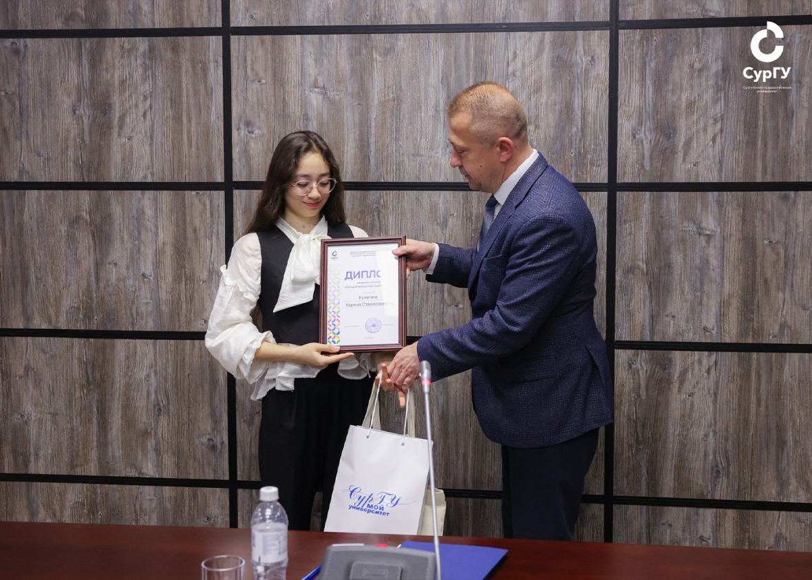 Прежде чем стать участниками заключительного этапа конкурса, студенты прошли несколько испытаний. Выступление перед жюри, состоящим из представителей ведущих компаний региона, стало решающим для финалистов. В итоге главный титул «Лучший выпускник СурГУ – 2025» достался студентке направления «Лингвистика» Института гуманитарного образования и спорта Карине Кунягиной, призерами в различных номинациях стали Аделина Каюмова, Аслан Вагидов, Алена Дмитриева, Самира Мехдиева и Анна Борщева. Одной из финалисток – студентке Института государства и права Дарье Магалатий – специальный приз вручил член жюри, заместитель генерального директора по правовым и кадровым вопросам АО «Газпром энергосбыт Тюмень» Сергей Галуза.