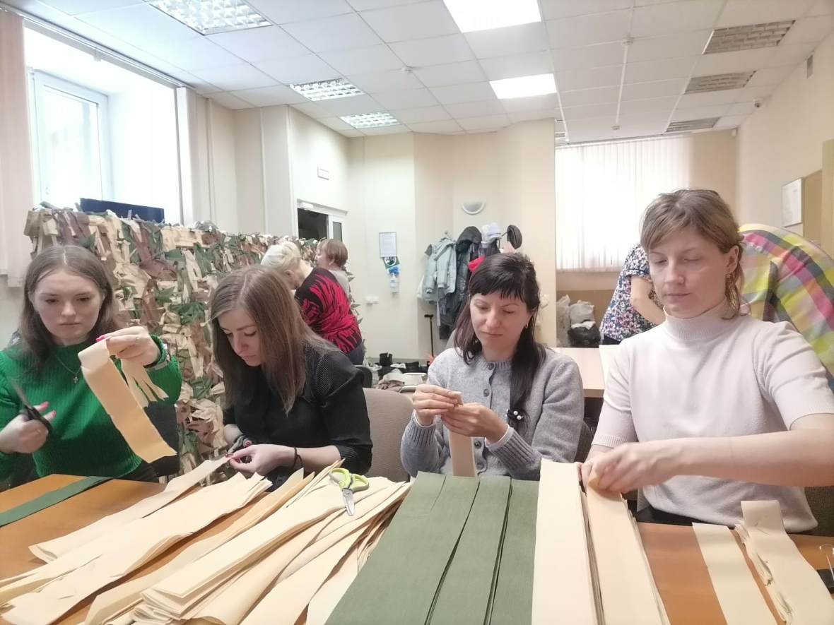 Коллеги из Тюмени задействованы на каждом этапе изготовления камуфляжного покрытия: нарезки основы для сети, плетения, упаковки и ее отправки в зону проведения СВО.