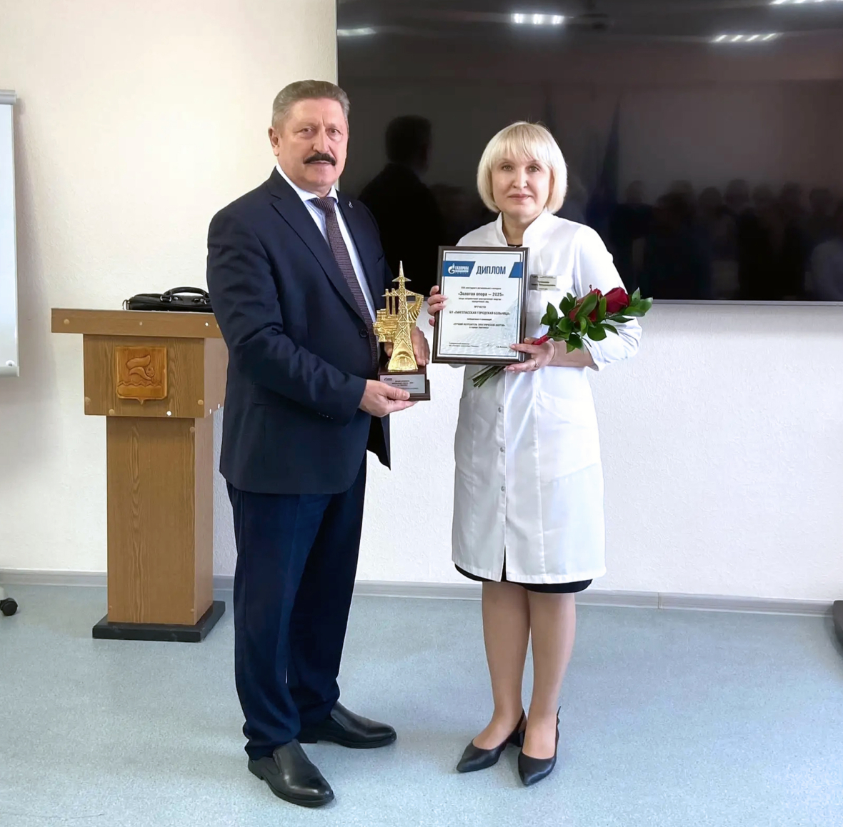 АО «Газпром энергосбыт Тюмень» поставляет электроэнергию в Лангепас с 2014 года, и в том же году началось сотрудничество компании и городской больницы. Вручая заслуженную награду партнеру из медицинской отрасли, начальник Лангепасского отделения Сайрин Хальфутдинов от лица компании поблагодарил руководство медучреждения за высокую социальную ответственность и вклад в поддержание стабильности энергетического комплекса региона.Как белый халат олицетворяет чистоту и приверженность высоким стандартам ухода за пациентами, статуэтка «Золотая опора» символизирует добросовестное партнёрство между энергетиками и потребителями из числа юридических лиц. В ответном слове врио главврача Галина Чухманова подчеркнула, что награда имеет особое значение для коллектива, который ответственно подходит к вопросам энергосбережения: