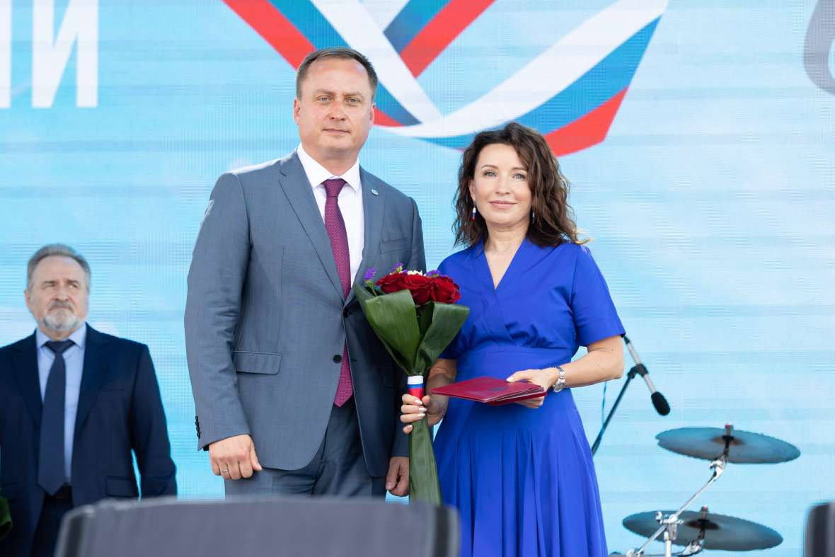 12 июня на центральной площади города в рамках праздничной программы глава Сургута Максим Слепов торжественно вручил сургутянам главные городские награды. Знаками «За заслуги перед городом Сургутом» и свидетельствами о занесении в Книгу Почета Сургута отмечены девять сургутян. Среди них – генеральный директор АО «Газпром энергосбыт Тюмень» Татьяна Бычкова.