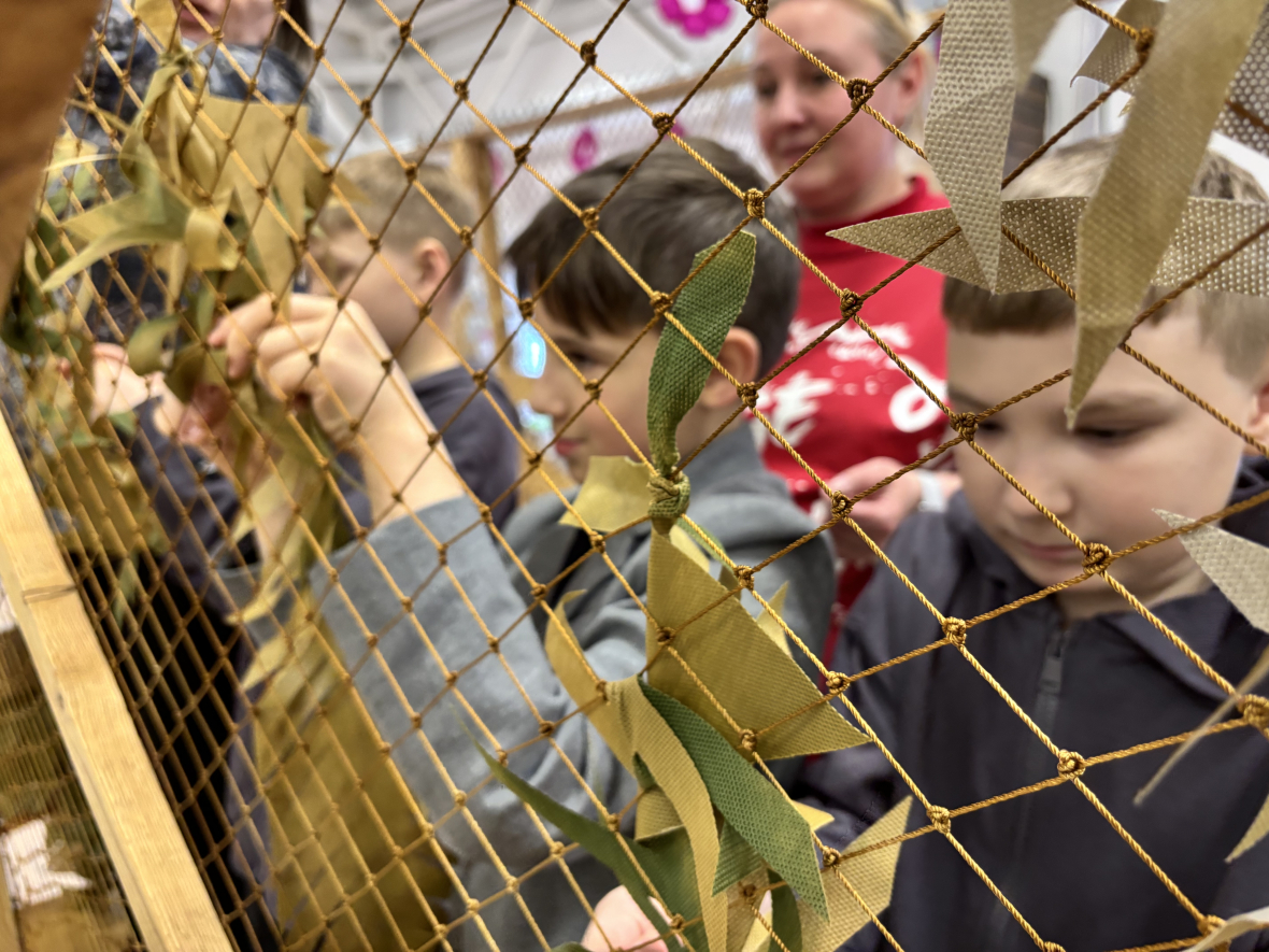 Чтобы одеть военнослужащих, выполняющих свой долг в зоне СВО, активисты сообщества привлекают людей всех возрастных категорий – от старшеклассников до серебряных волонтеров. Многие осваивают процесс производства с нуля, а после становятся незаменимыми помощниками. Самых маленьких участников мастер-класса заинтересовал процесс создания маскировочных сетей. Попробовали – требуется терпение…