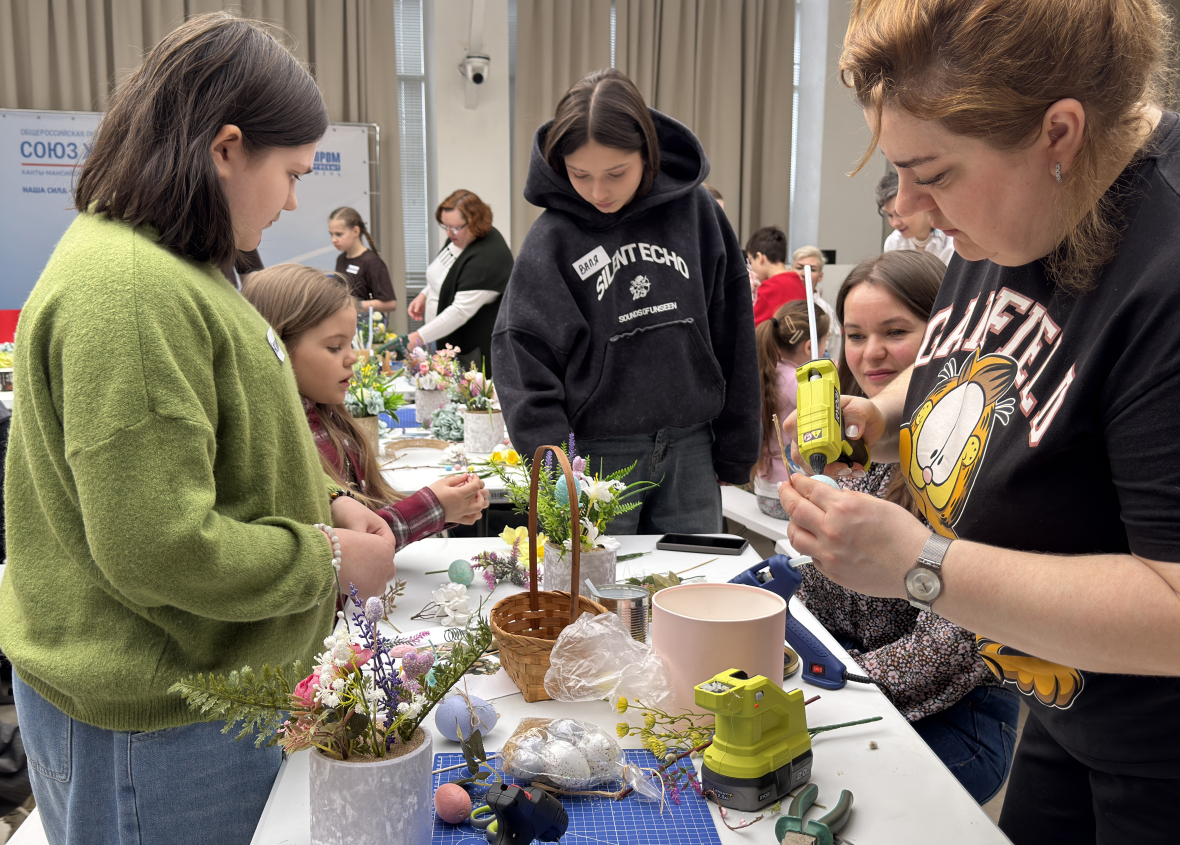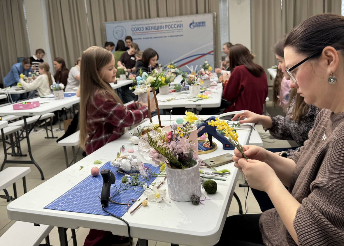 Мастер-класс собрал в главном офисе АО «Газпром энергосбыт Тюмень» семьи сотрудниц компании, активисток Женсовета Сургута, Женского движения Единой России и особых гостей – жен и детей бойцов специальной военной операции. Участники погрузились в атмосферу творчества, где каждый смог проявить фантазию и создать декоративную композицию для праздничного стола, отразив свое восприятие Светлой Пасхи.