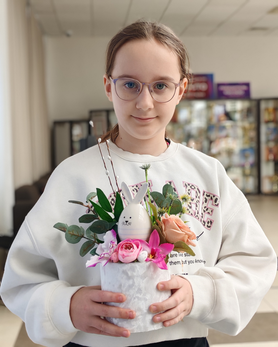 В энергии сотворчества родились самые удивительные и неповторимые работы. Используя одинаковые предложенные материалы – весенние цветы, веточки вербы, декоративные элементы и пасхальную атрибутику – каждая команда создала по-настоящему индивидуальную композицию. Закончилась встреча дружным чаепитием для больших и маленьких участников мероприятия.